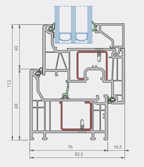 - Hatkamrás profil hőszigetelési értéke egészen 0,94 W/m²K